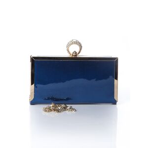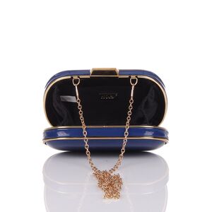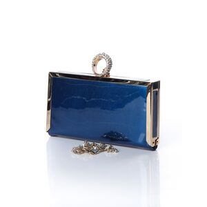 Oval Hatlı Metalik Klips Rugan Mavi Abiye