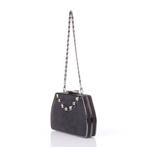 Oval Hatlı Metalik Klips Rugan Siyah Abiye