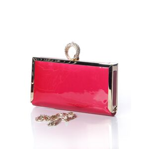 Oval Hatlı Metalik Klips Rugan Fuşya Abiye
